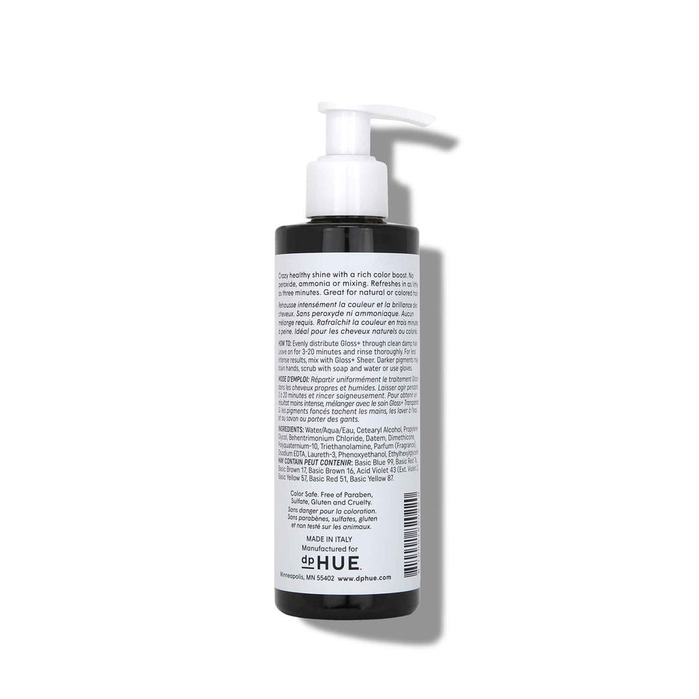 Gloss+ is a semi-permanent hair color, in a deep conditioning base, that works by staining the outside of the hair with pigment. Boost color with hydrating ingredients that leave hair soft, shiny and illuminated, without the hassle of mixing and without harsh peroxide or ammonia. Gloss+ is intended to enhance and deepen your current hair color, not to create dramatic hair color changes or cover grays. Use when color is lacking shine and vitality, when it has started to fade, or when highlights need to be toned. Formulated without Parabens, Sulfates, Phthalates, Gluten. Animal-friendly and vegan. Available in 11 shades.